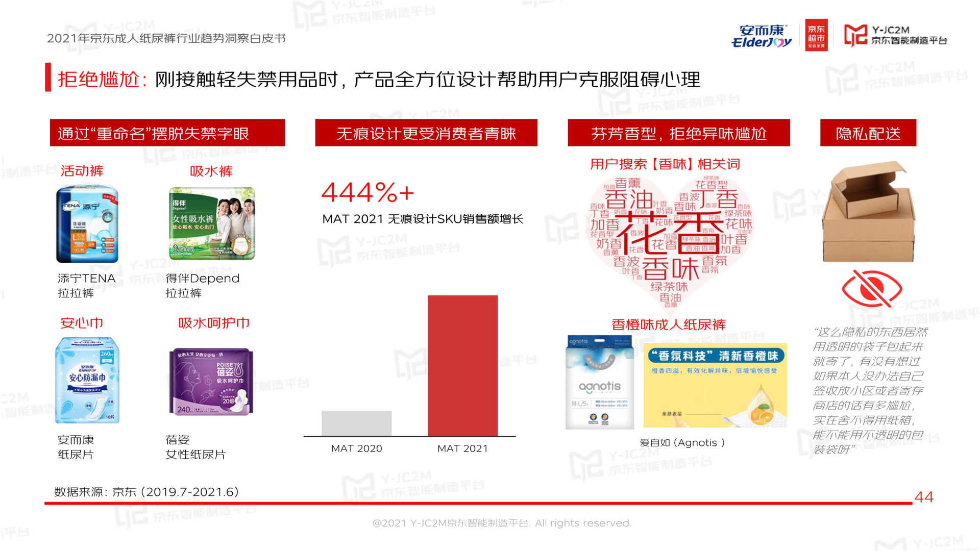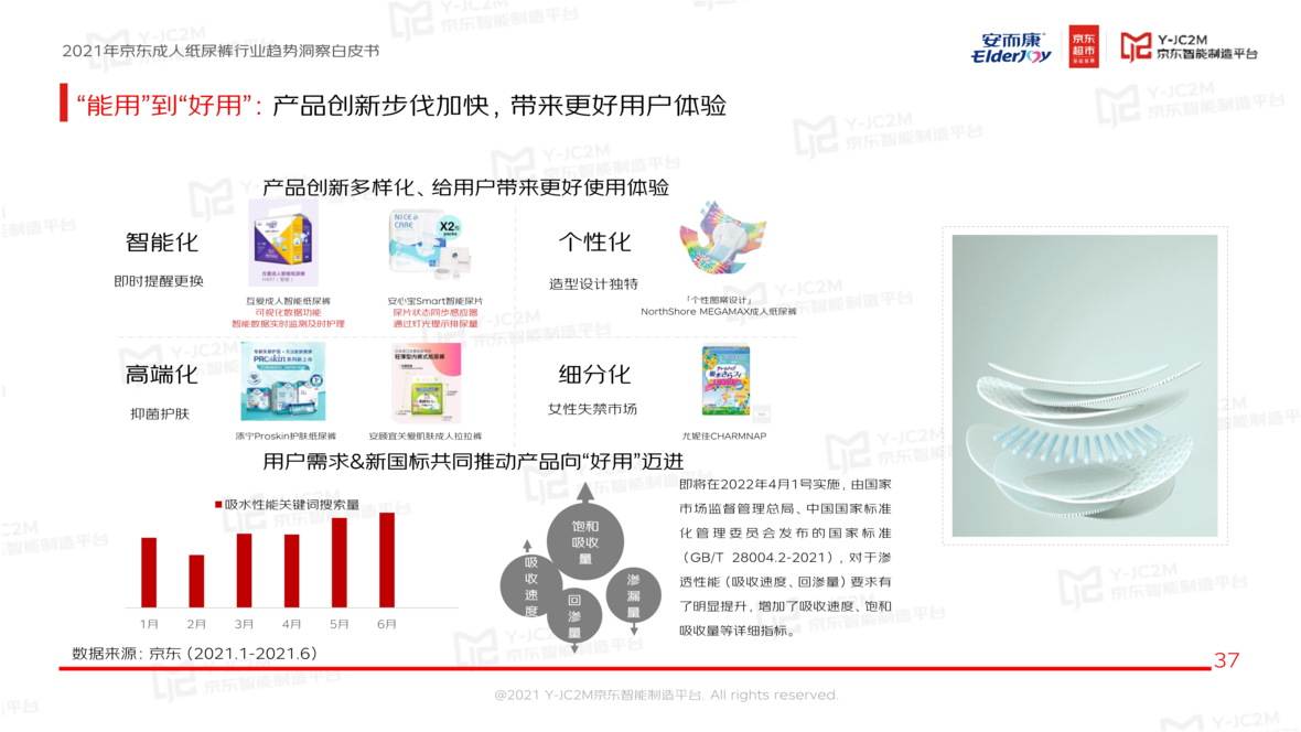 立足现实,展望未来。在我们看好未来国内成人失禁用品市场发展趋势的同时,也要清醒地认识到,成人失禁用品是一个持续性很强的品类,所以想要在广大消费者心中建立并巩固对于这一品类的正确认知,就必须回到产品本身设计最初需要解决及持续挖掘的痛点,力求以更新的技术与理念打造全新的成人失禁用品的设计思路与品质体系,进一步加快产品创新步伐,实现从“能用”到“好用”的转变,营造更好的用户体验。